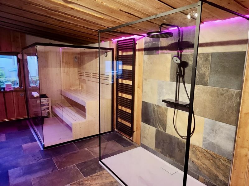 Das Saunahaus verfügt über ein Doppelbettzimmer, einem Bad und einer Wohnküche mit integrierter Sauna und zusätzlicher Dusche im Wohnbereich. (Für die Nutzung der Sauna fällt eine extra Gebühr an) Außerdem lädt der kleine Garten zum Entspannen ein.